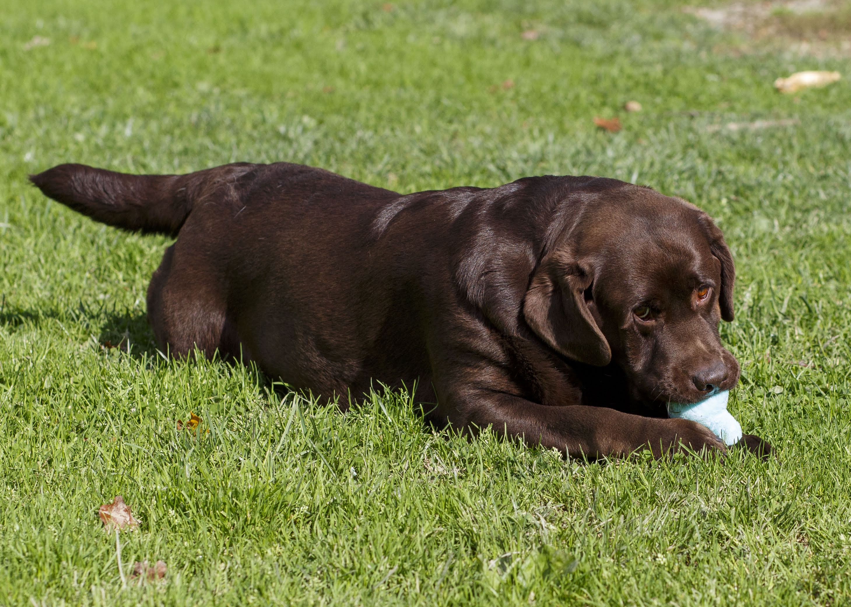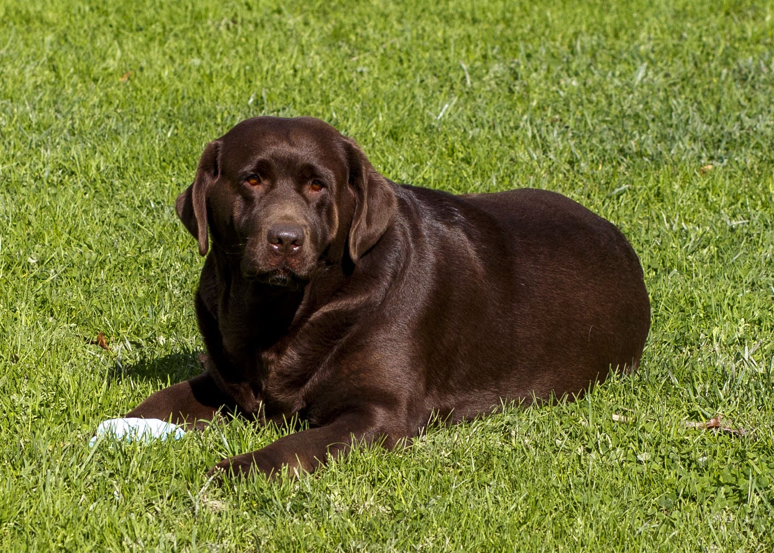 Franny’s temperament is matched by her beauty. She has a wide, regal forehead with a heavy brow, which she passes on to her puppies. She has a deep brown coat with the deep-set eyes that are signature to Chocolate labradors.